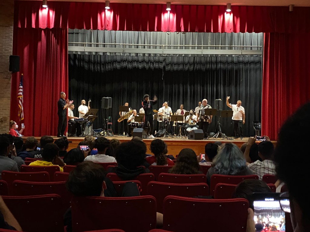 During the performance, the band played cultural music and songs written by the band. The music was very upbeat and it showed a very good representation of Latin music. During this performance, there were many instruments such as drums, keyboards, and maracas. A few of our own band kids played a song with them, such as Sean Fernly ‘23, Alysa Cayer-McCarthy ‘23, Colin Strictland ‘23, Danthy Nguyen ‘23, Vanessa Nguyen ‘25, Nicole Gregory ‘25, Giana Akter ‘25, Kevin Mcguire ‘25, and Tyler Izquierdo ‘25.