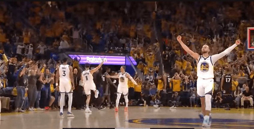 Segment #3: Warriors with great ball movement knock down a buzzer beater three.