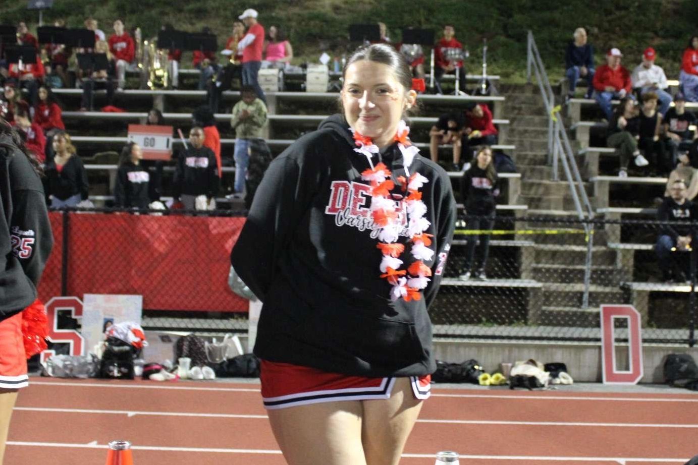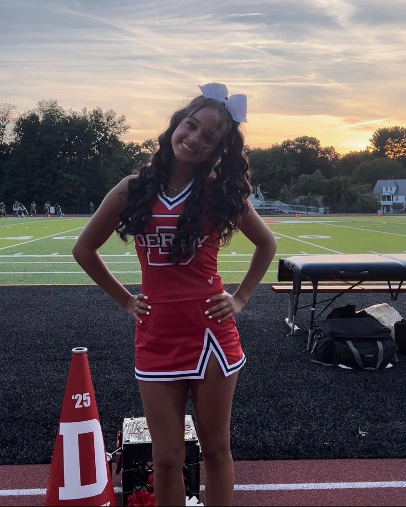 Anastasia “Stash” Stanis ‘24 is one of the three cheerleading captains. Stanis has been cheering for 14 years. She started off as a “tiny mite” for Derby’s Pop Warner team. During her time on Pop Warner, she won an award for academics and leadership. She also won the Superior Sportsmanship Award in 2022 and was recently appointed to the Athletic Sportsmanship Council for the CIAC (Connecticut Interscholastic Athletic Conference). Stanis’s favorite thing to do is stunting and she says her favorite memory was when her team won Regionals in 2022 because she won a ring. Stanis’s teammates would describe her as supportive and welcoming. She values everyone’s opinion and tries to make sure nobody ever feels left out. Stanis says she loves to meet the new freshmen because she’s able to build connections with them. She says this cheer season has to be one of the best years they’ve ever had for games. Derby High School’s athletic director Jennifer “Moff” Moffat says that Stanis has many leadership qualities and she is very hardworking. She says Stanis tries her best in everything she does and strives for perfection.