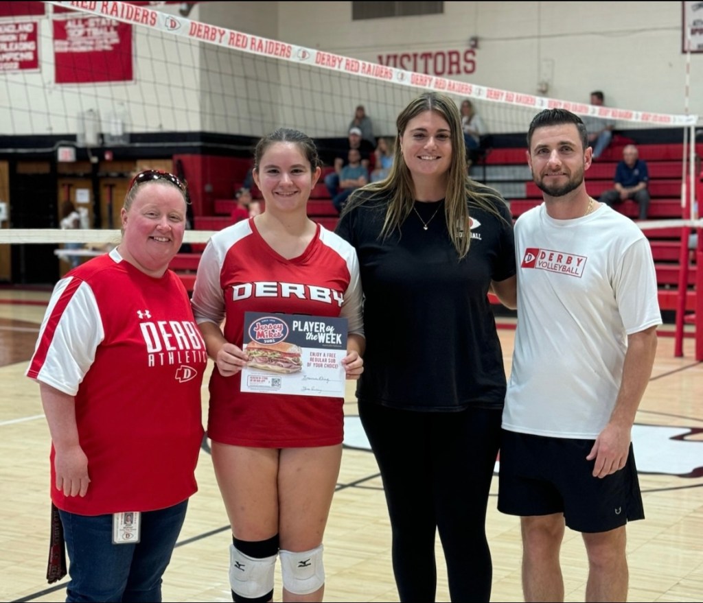 Derby High School athletics and Jersey Mike’s Subs have teamed up to recognize fall student athletes and give them Jersey Mike’s rewards. Every Friday, a fall student athlete is announced as a Jersey Mike’s “A Sub Above” player of the week and given a certificate for a free Jersey Mike’s sub. So far, 2 DHS students have been recognized.
