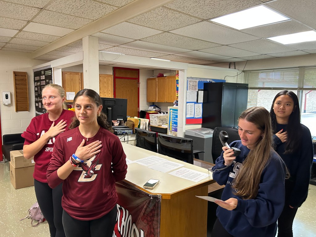 Each year at Derby High School a group of seniors start advisory period with a slew of morning announcements on the intercom. This year there are two groups of four students, Cassie Silkoff ‘25, Emma Hyder ‘25, Lynette Martinez ‘25, and Zomora Moya ‘25 in one group and Vincent Trinh ‘25, Quinlan Gray ‘25, Vanessa Nguyen ‘25, and Gianna Akter ‘25 in the other group, who switch each week to use their best voices and say their parts.