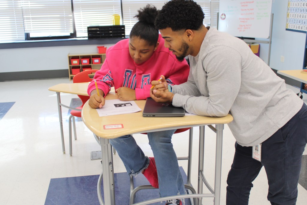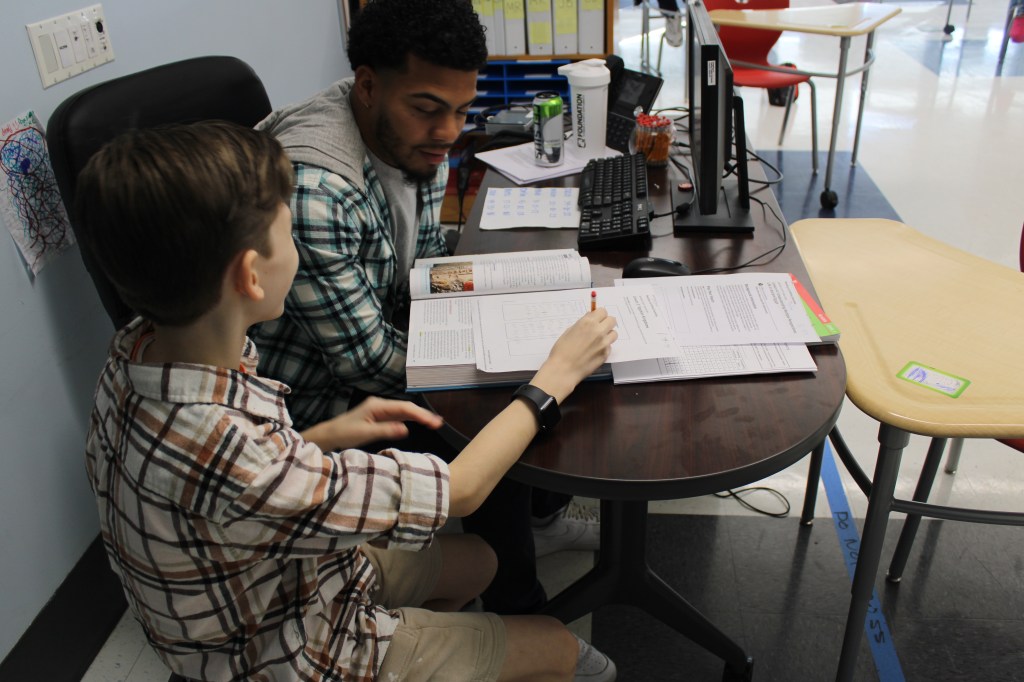 At 10:20, only an hour into my stay, the class came together for a group reading assignment. During the group reading time, Ellis went to help a 7th grader who was struggling with her reading work. Ellis helped her by talking to her about the work and breaking down it down slowly piece by piece, and the student slowly started to understand the work and was able to finish the rest by herself.