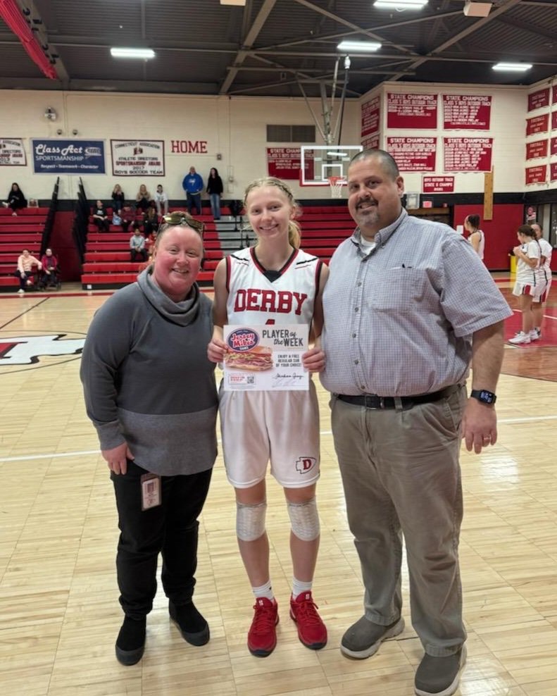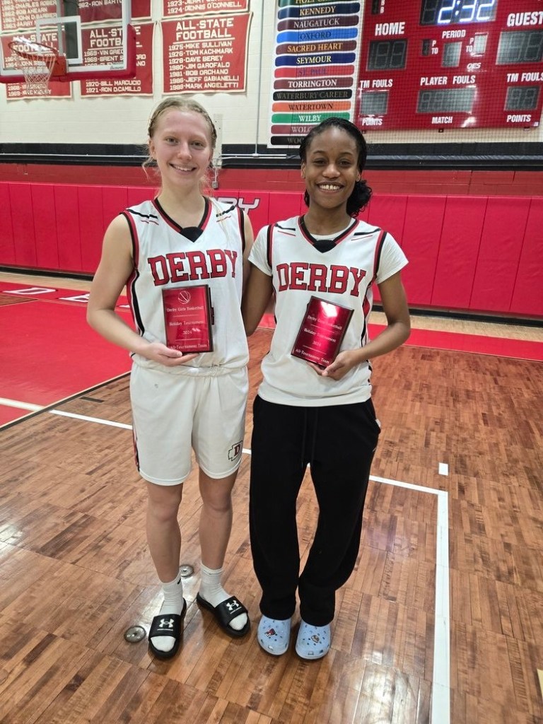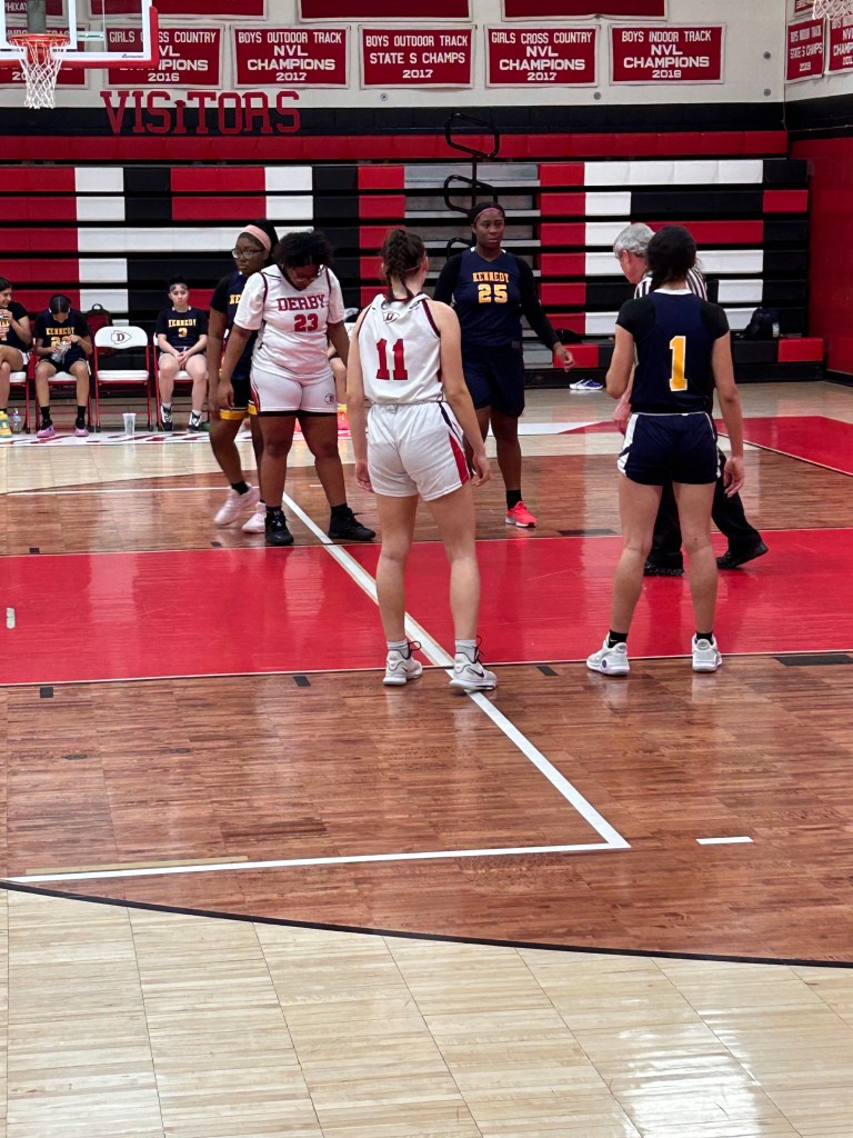 The Derby girls’ basketball team started their season off a little rocky, but they have worked hard to improve their skills with every game they have played. They are small but mighty with only seven players on the team. They recently had a big win against the Kennedy Eagles on Jan. 29, 2025. The captains of the team are Emma Desanty ‘25, Jerlena Alexander ‘25, and Shea Gray ‘27. The head coach is David Chevarella, assisted by Heather Landolfi, Anna Chevarella, and Kailee Hyde.