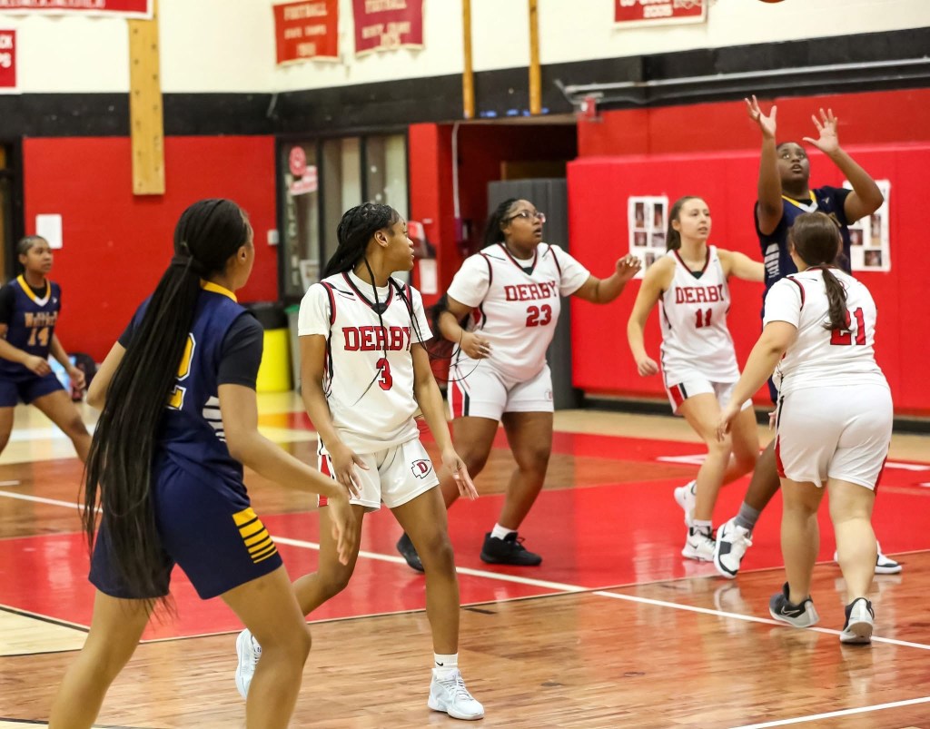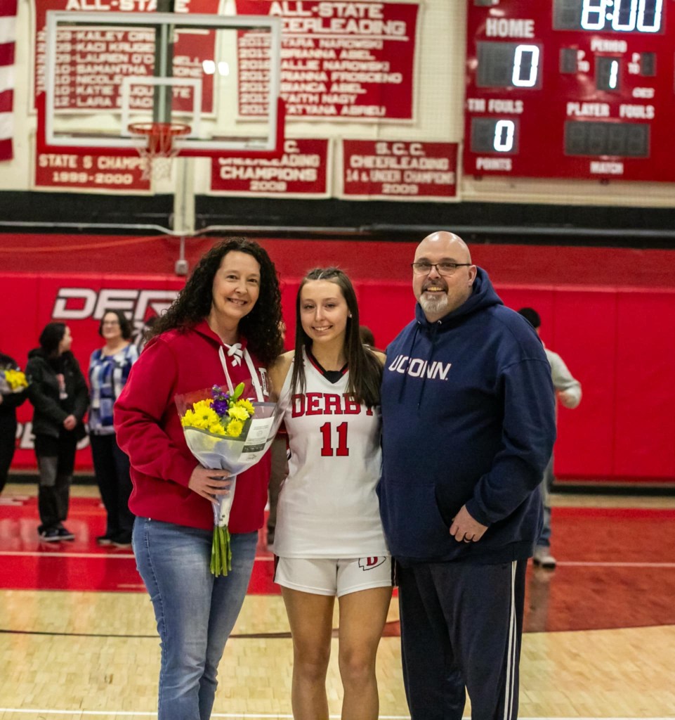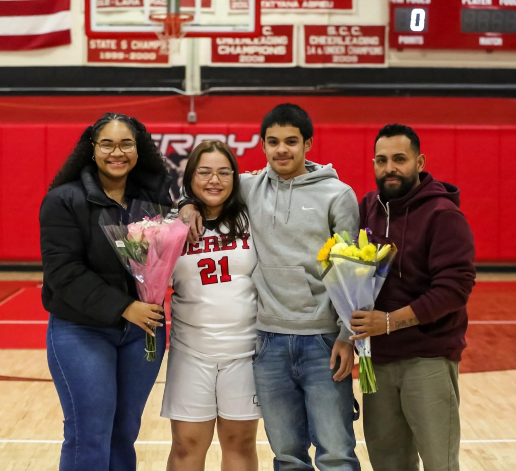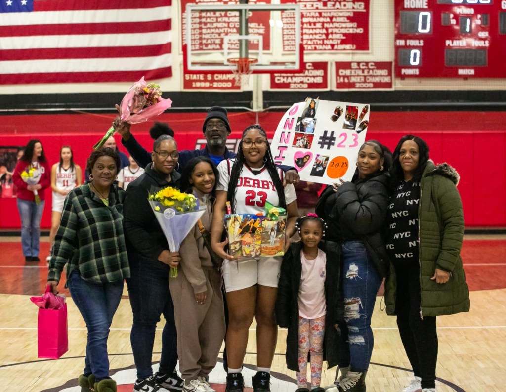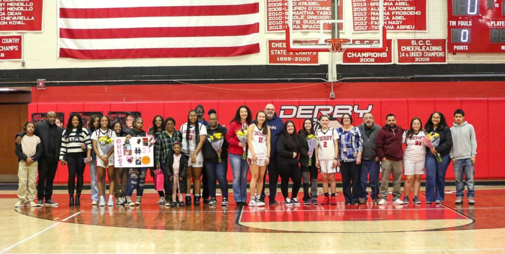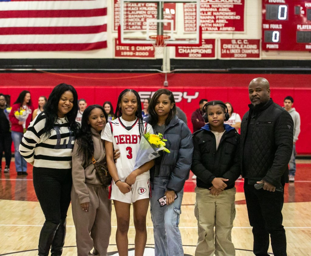 This year, the Derby girls’ basketball team has five seniors, which is a big improvement from last year, considering there were no seniors. The five seniors are Jerlena Alexander (Captain)’ 25, Emma DeSanty (Captain) ‘25, O’Nestii Gaines ‘25, Alexis Cavallaro ‘25, and Samantha Barillas-Rivera ‘25. The senior night ceremony and game was Tues. 18, 2025, at 6:00 p.m. against the Whitney Tech Owls. The goal was for the Red Raiders to get the win, but unfortunately that is not how it played out.