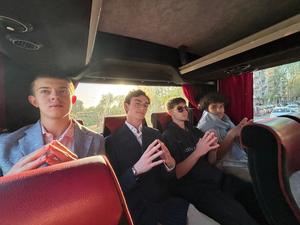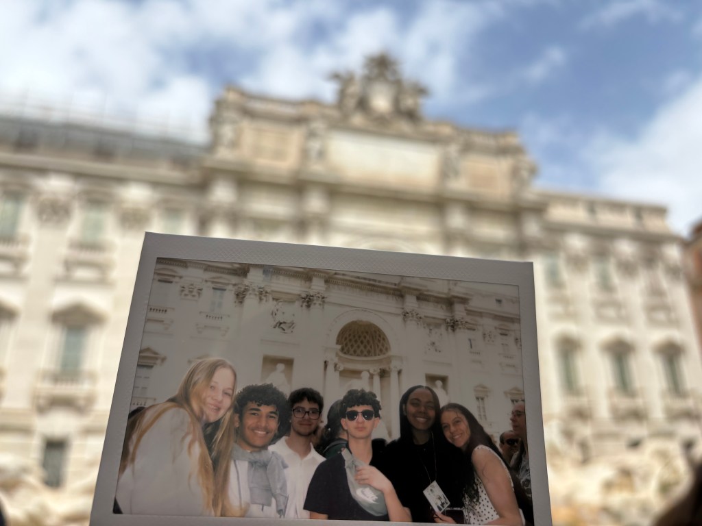 Photo by Luca Ventimiglia ‘27: Silkoff and Ventimiglia pose with armor while at the Medieval Torture Device Museum in Siena.Photo by Luca Ventimiglia ‘27: Simjouw, McGuire, Colton Shields ‘27, and Jayden Cooper ‘27 all looking spiffy on their way to dinner while in Rome.Photo by Luca Ventimiglia ‘27: Ventimiglia after making what he calls the “best pizza napoletana ever,” while in Italy.Photo by Luca Ventimiglia ‘27: A polaroid picture of Rudus, Cooper, Shields, Ventimiglia, Skylar Anderson ‘27, and Silkoff outside of the Trevi Fountain.Photo by Luca Ventimiglia ‘27: The beautiful view of the sunrise while the group was on the plane.