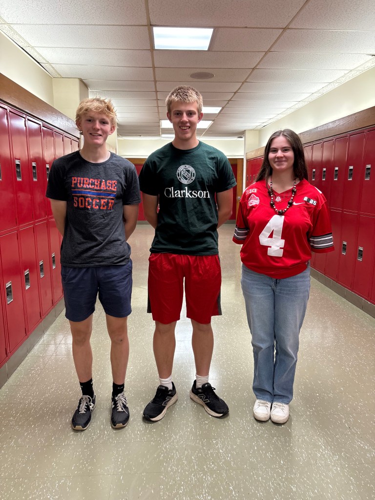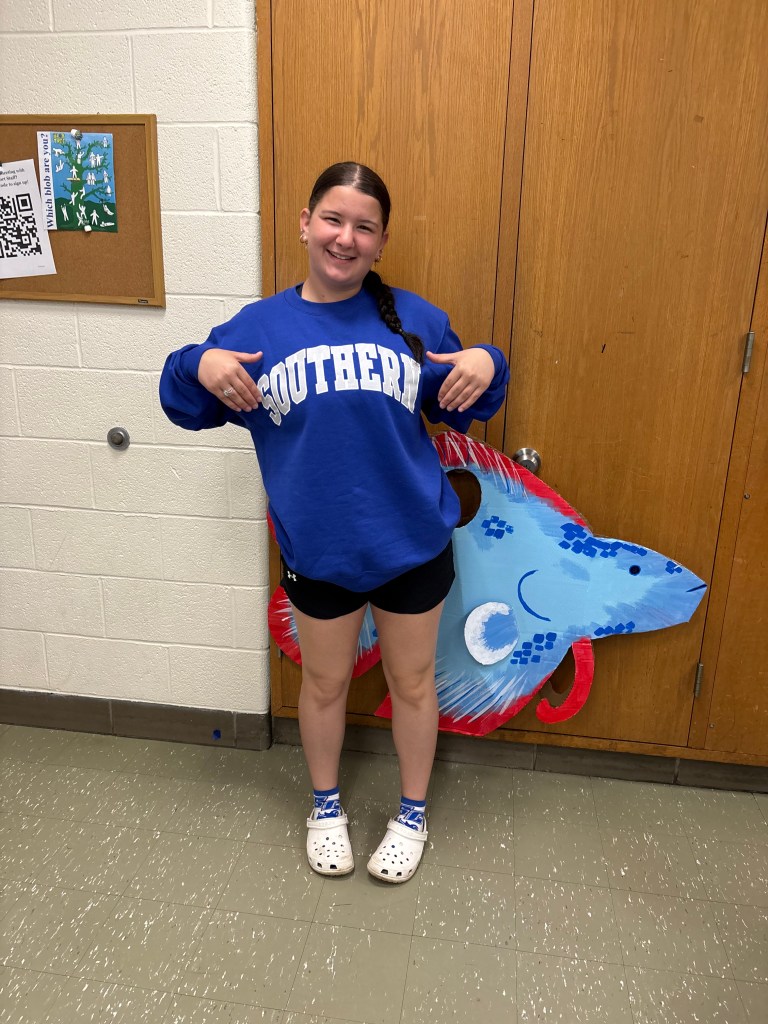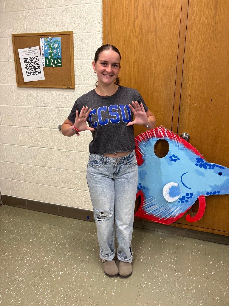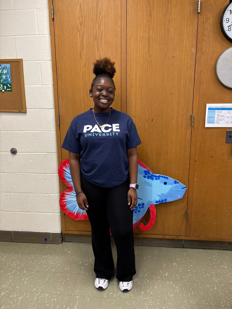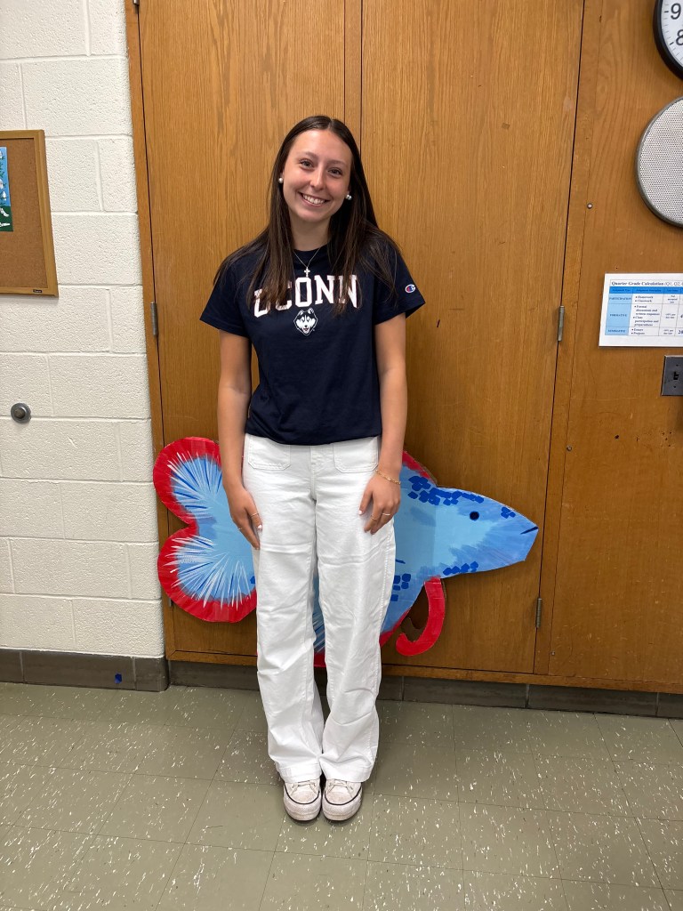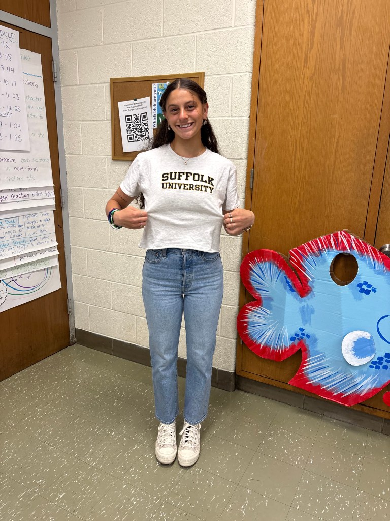 Photo by Nicole Borges: Senior students in AP Language and Composition pose with all of their college-themed outfits.Photo by Quinlan Gray ‘25: Kaelyn DiMartino ‘25 representing Southern with a smile on her face as she will be attending in the fall and majoring in Nursing. DiMartino says she is, “So excited to start a new chapter at SCSU!”Photo by Quinlan Gray ‘25: Emma Hyder ‘25 shows off her Central Connecticut State University shirt as she will be attending and majoring in special education. Hyder says, “Go Blue Devils!”Photo by Quinlan Gray ‘25: Emma DeSanty ‘25 poses with her UConn shirt as she will be attending the University of Connecticut in the fall and major in allied health sciences.Photo by Quinlan Gray ’25: Cassie Silkoff ‘25 posing with her Suffolk University shirt where she will major in social work while also running both cross country and track and field. Silkoff shares that she “Can’t wait to be a Ram.”Photo by Quinlan Gray ’25: Julissa Flores ‘25 showing off her Pace University shirt with a big smile; she will be majoring in business and marketing. Flores says, “I can’t wait to start the year in the city.”Photo by Kaelyn Dimartino ‘25: Gray poses with her University of Connecticut hoodie as she plans to attend and major in Education.Photo by Quinlan Gray ’25: Nick Sheridan ‘25 will be attending Purchase College, will major in economics, and play soccer. Quintin Simjouw ‘25 will be attending Clarkson University and will major in data science. Brianna Kling ‘25 will be attending The Ohio State University and is part of their exploratory program.Photo by Quinlan Gray ’25: Jay-Lynn Donaldson ‘25 posing with her North Carolina Central University shirt; she will be majoring in Psychology.