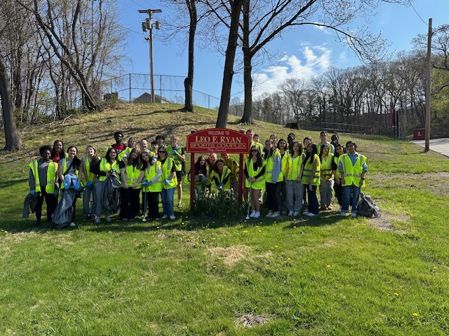 On Thursday, April 24, 2025, the Derby High School Rotary Interact club and the National Honor Society came together to walk around the campus and its closest surrounding streets to pick up loose trash or anything that does not belong on the roads.