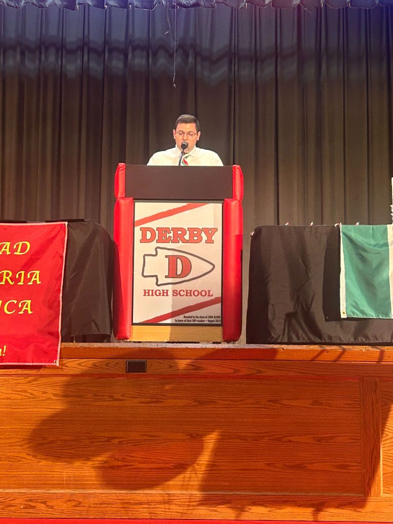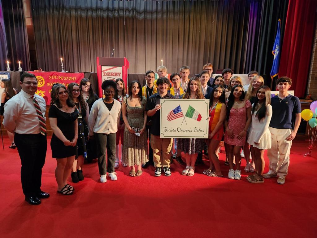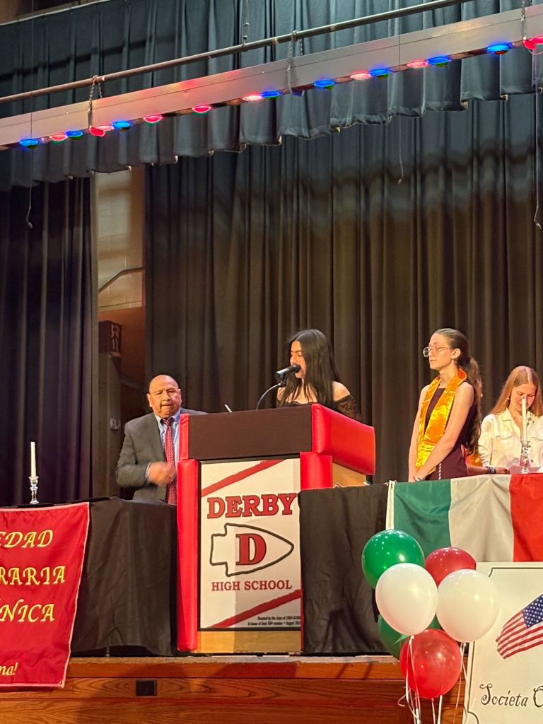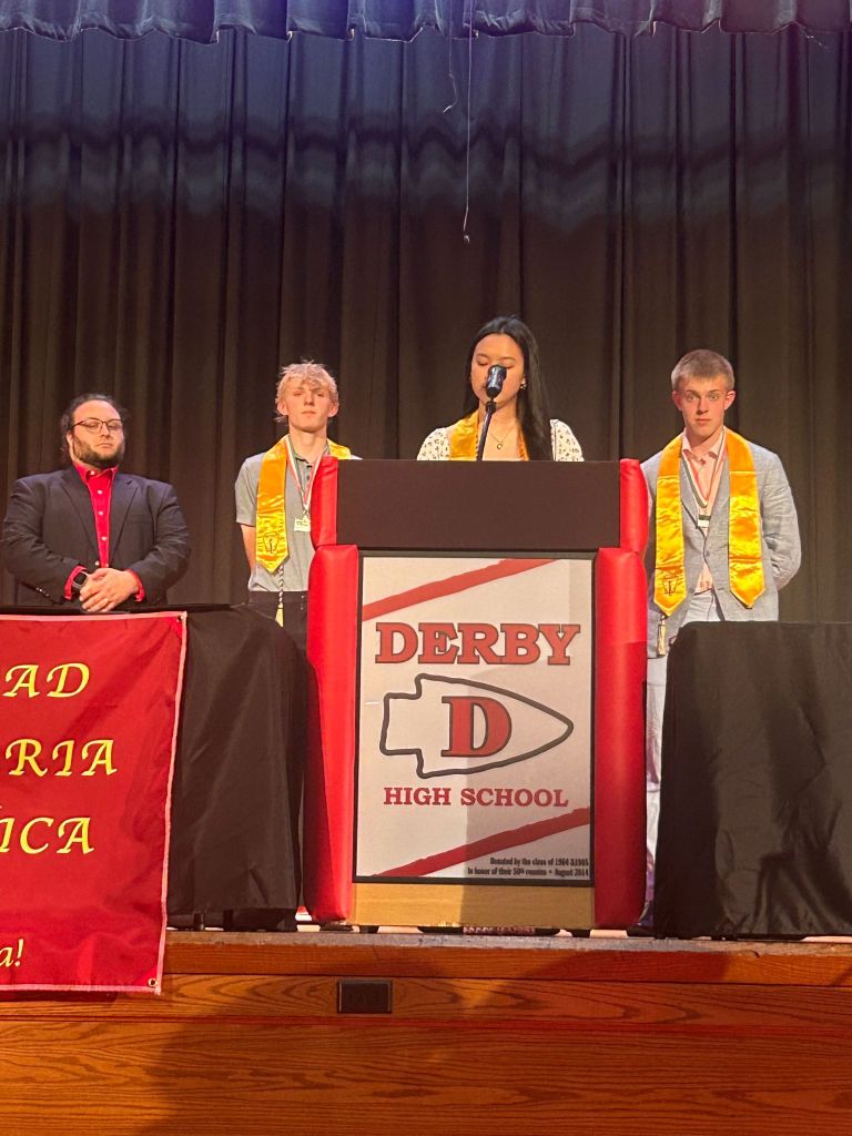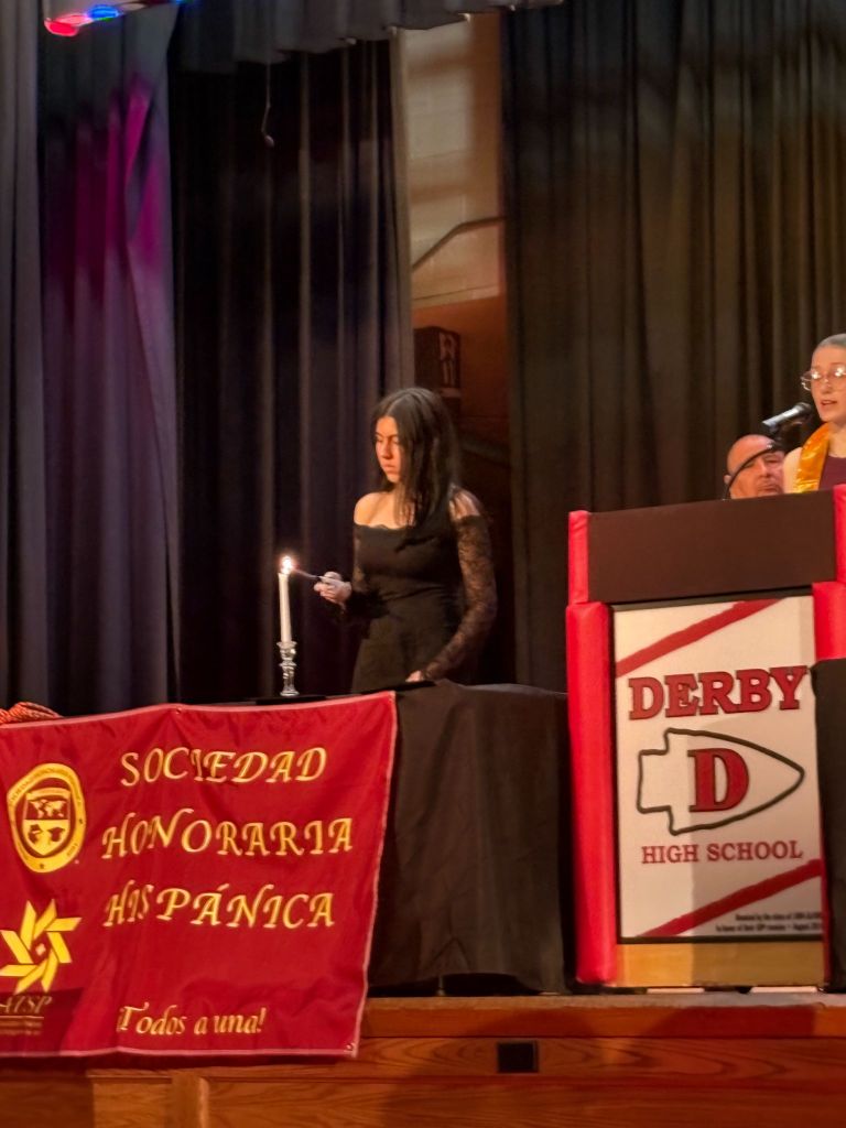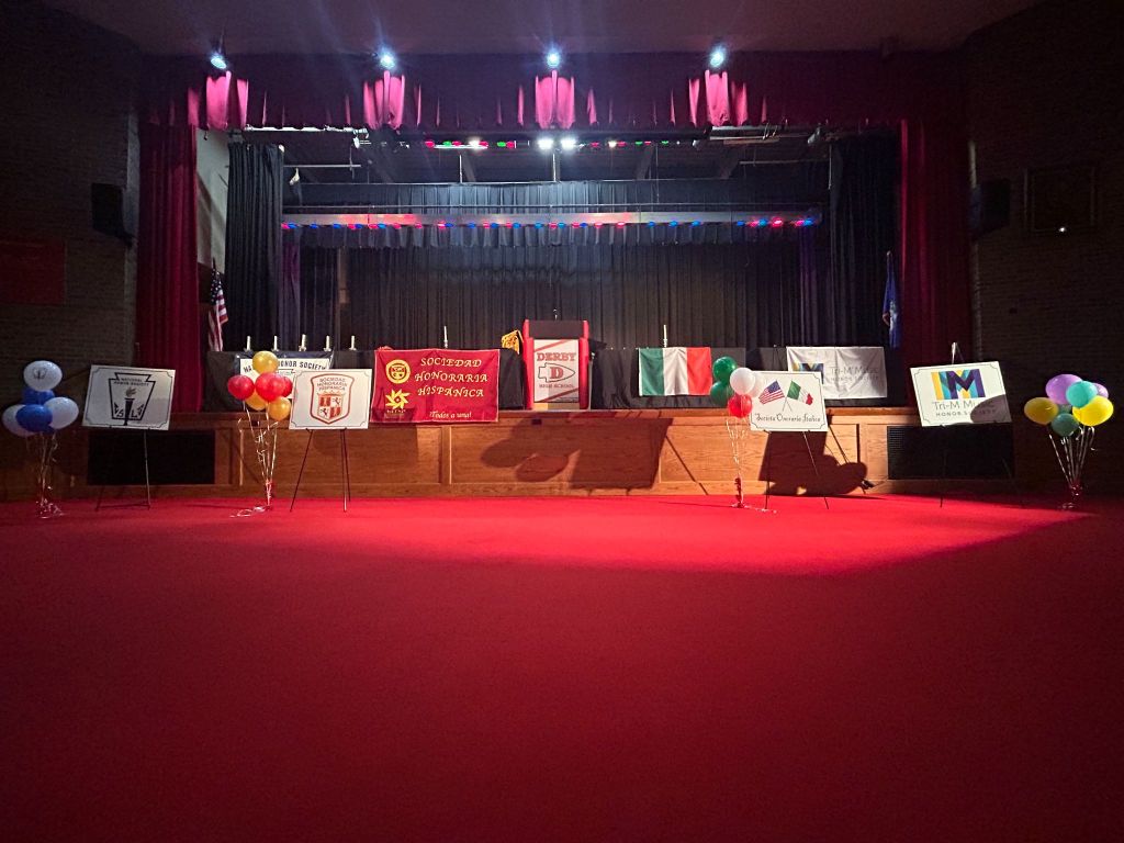 On Wednesday, April 29, 2025, Derby High School held its annual Honor Society Induction Ceremony inside the auditorium at 6:30 p.m. The ceremony honors the four honor societies here at DHS. They are the National Honor Society, the Spanish Honor Society, the Italian Honor Society, and the Tri-M Music Society.