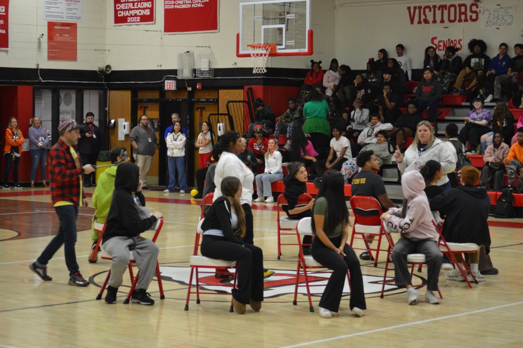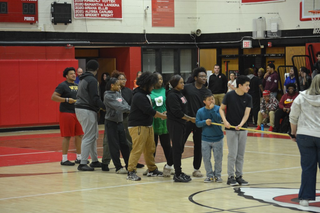 The gym buzzed with excitement as students cheered on their classmates during a series of high-energy games.