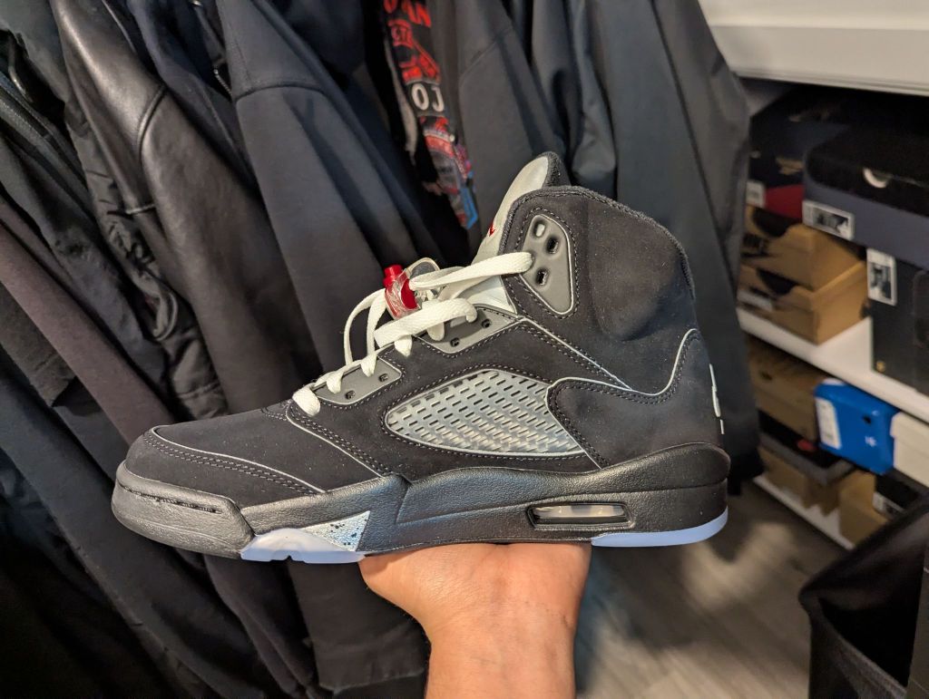 The Air Jordan 5 Retro Black Metallic Reimagined is the original pair Michael Jordan wore while playing for the NBA, but with a twist, adding extra 3M reflective material, a material that shines when light lands on the shoe. Extra metallic is added to the whole shoe, brought back for everyday wear or a stylish yet sporty sneaker and to make it accessible to newer collectors and normal consumers. Designed by Tinker Hatfield and released originally in 1990, this year is the 35th anniversary of the original shoe.