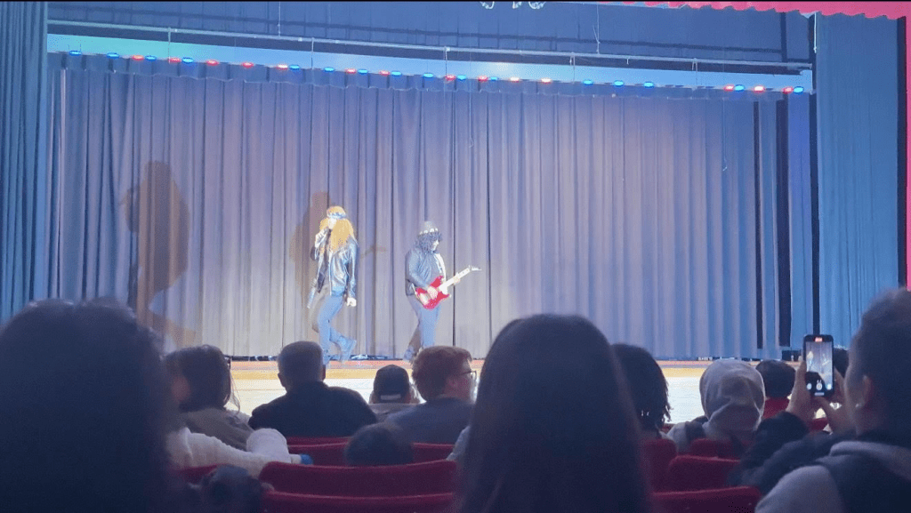Photo by Ava Umpierre ‘27: 2nd Place winners Mounir Elias ‘27 and Carlos Bolanos ‘29 performing Guns N’ Roses – Welcome To The Jungle