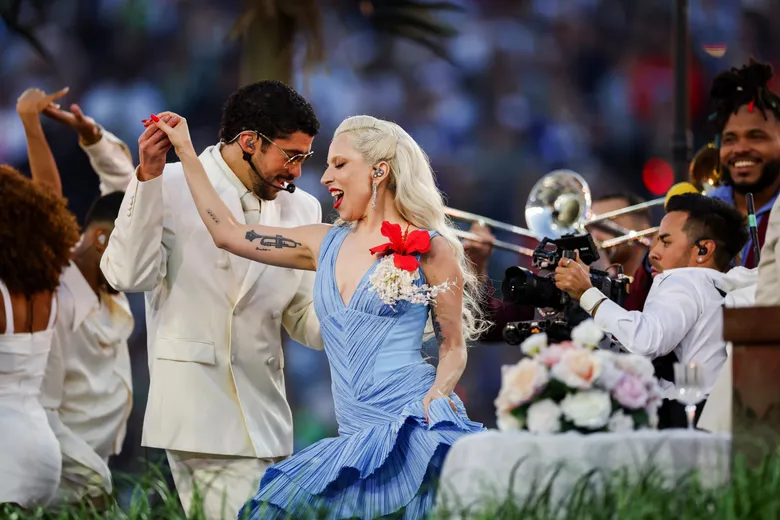 As he moved on from the songs “Titi Me Pregunto” and “Yo Perreo Sola,” we were surprised with Lady Gaga performing a salsa version of “Die With a Smile” and joined for “Baile Inolvidable” where a couple actually got married. The couple invited Bad Bunny to their wedding as a joke but later found out he invited them to get married during the performance. As everyone dances, you see kids asleep on chairs representing how you adapt to adult life, no babysitter, just family.