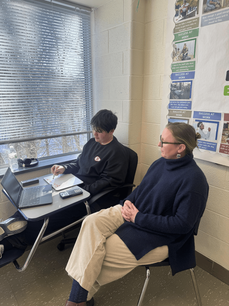 Photo by Shirley Diglio-Guerrette ‘27: Mrs Sheridan helping a student during class
