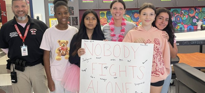 Photo from Derby Middle School X: Tracey Quartiano poses with four of her students and the middle school security guard. By Emma DeSanty '25 Derby Middle School assistant principal Tracey Quartiano was diagnosed with breast cancer for the second time at the beginning of this school year. Shortly after receiving this news, Derby Middle School … Continue reading Derby goes pink for middle school assistant principal Tracey Quartiano